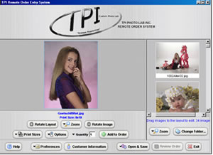 The TPI remote order entry system (ROES) is an online ordering system that allows you, the client to create an order from your studio computer and send that order to our lab for printing. You control the cropping and sizing and create your order automatically....And the software is FREE. |